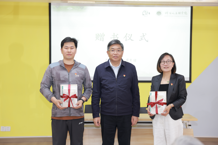 校党委书记曹锡康向新丰村党群服务中心赠送了《医事文化谈屑》(段逸山教授主编)《诗经中的本草》(朱伟常教授主编)《传统养生之道与现代健康生活》《经典里的养生名句》(李其忠教授主编)等系列中医药文化读物。