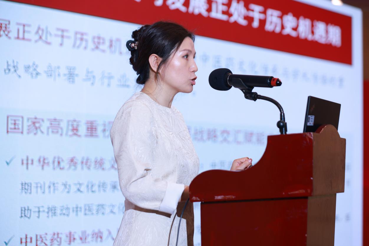 中华中医药学会信息部主任厍宇介绍“中国科技期刊卓越行动计划中医药期刊集群项目申报及建设情况”,平台秘书长、《中医药文化》编辑部主任李海英汇报“中管局国合司项目‘中医药期刊集群国际学术交流平台建设研究’阶段性成果”。
