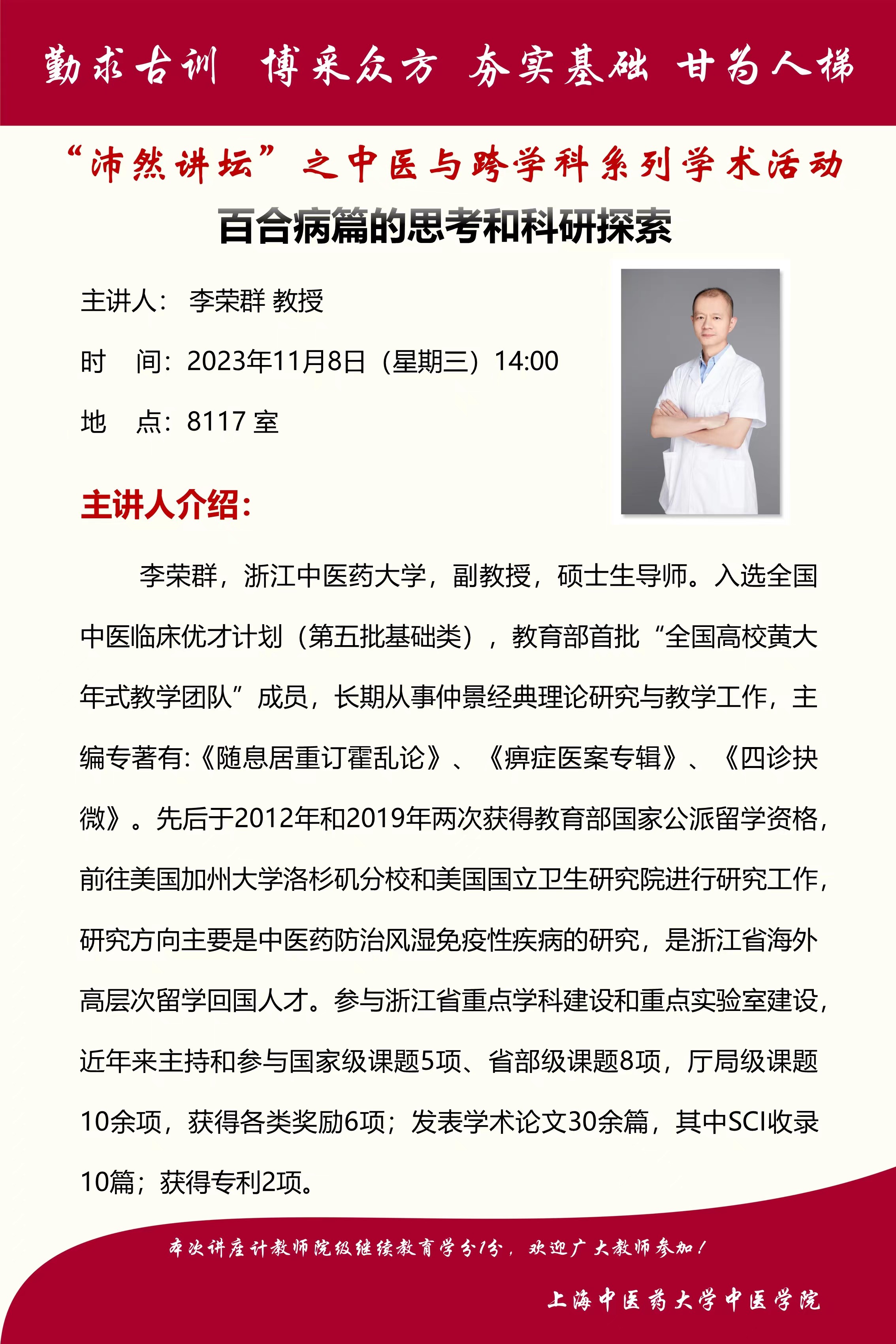 beat365官方网站附属龙华医院鹿振辉教授与我院郭晶磊教授受邀做《中医经典临床与应用》系列讲座