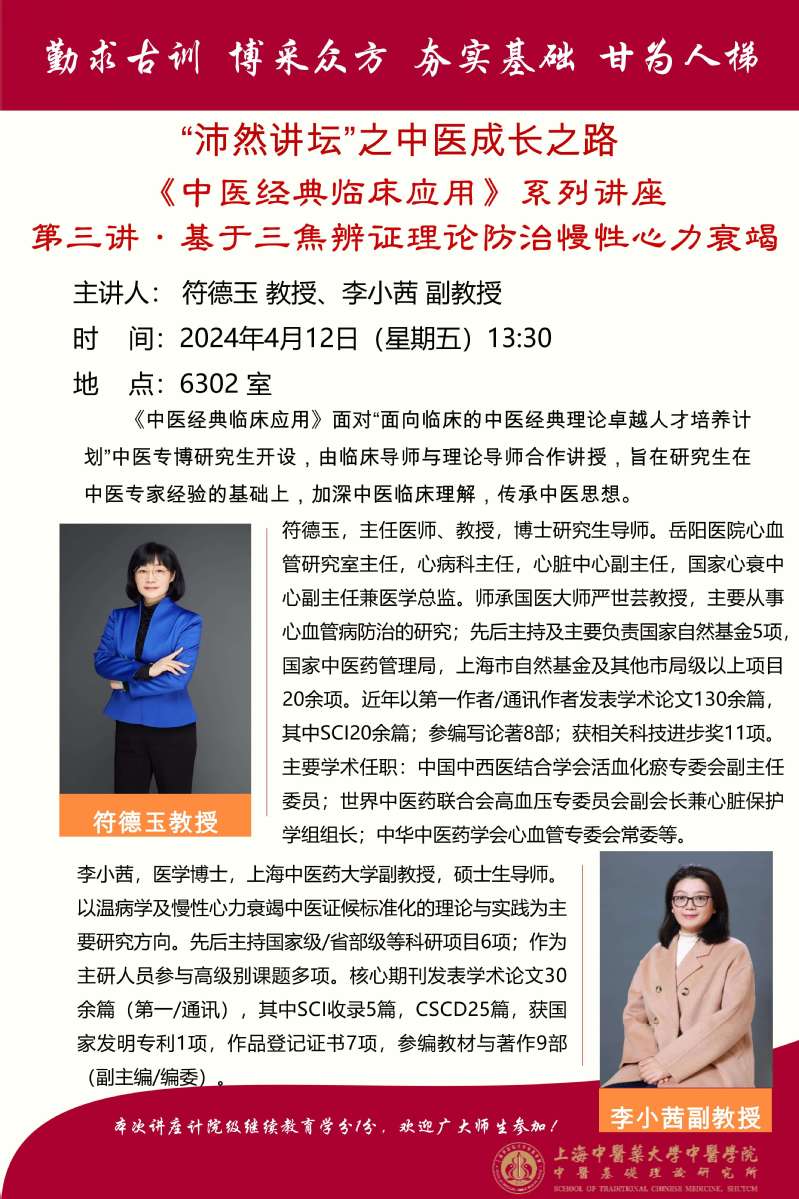 《中医经典临床应用》系列讲座 第三讲·基于三焦辨证理论防治慢性心力衰竭