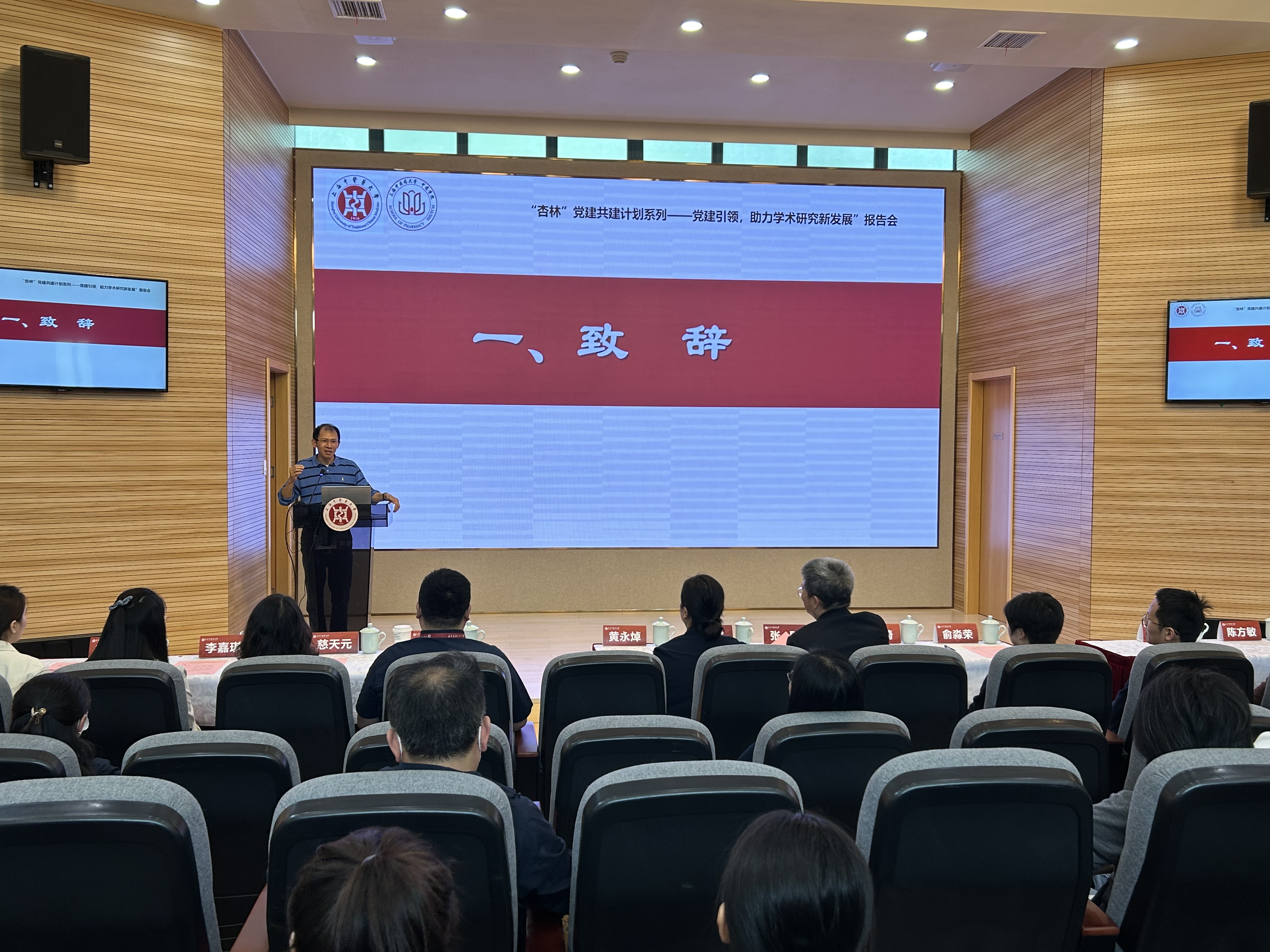 为深入学习贯彻习近平新时代中国特色社会主义思想和党的二十大精神,进一步发挥基层党组织的政治功能和组织力,4月19日,中药学院党委与中科院上海药物研究所药物制剂党支部在全球合作伙伴中心一楼报告厅开展党建共建活动,召开以“党建引领,助推学术研究新发展”为主题的报告会,旨在将理论学习与学术研究深度融合,积极探索以党建引领学科高质量发展的新模式。中科院上海药物研究所药物制剂党支部师生党员、中药学院领导班子成员和师生党员参会。报告会由中药学院党委书记沈岚主持。