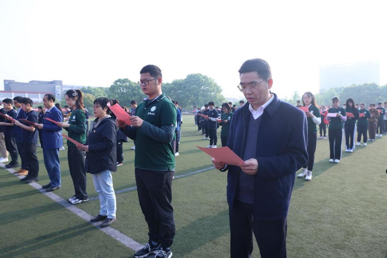 晨起闻鸡鸣,“武”动正青春。4月26日清晨,2023年春季学期“闻鸡起武”大比武暨“杏林青年说”启动仪式在学校体育场举行。基础医学院党委、体育部党支部、党建共建单位的党员代表、基础医学院2022级全体学生等近300名师生参加。活动由2021级中医学(屠呦呦班)常睿发和朱逸菲主持。