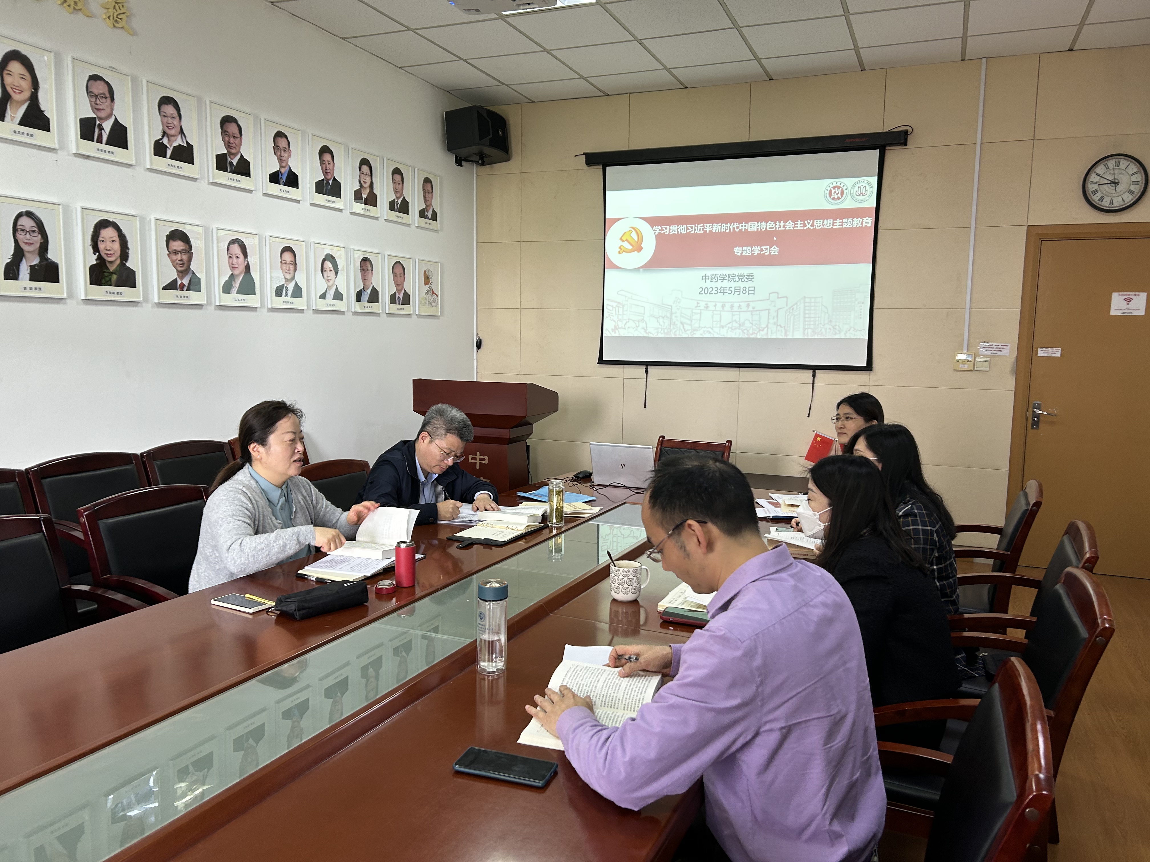为深入推进学习贯彻习近平新时代中国特色社会主义思想主题教育,5月8日,中药学院党委班子成员开展专题学习会,专题学习《习近平新时代中国特色社会主义思想的世界观和方法论专题摘编》,并就相关主题开展交流。学习会由中药学院党委书记沈岚主持。