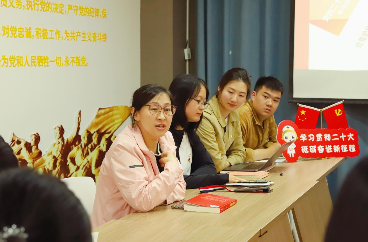 作为本期的分享人,薛聪聪介绍了《红星照耀中国》的作者生平、作品背景与基本内容。并结合自身岗位分享了阅读的心得体会,与会师生也纷纷结合实际交流体会,同时对怎样将书本中的知识运用到学习与生活中展开了讨论。几位教师表示要多读红色经典,讲好中国故事,引领青年向党组织靠拢。同学们纷纷表示,更要珍惜现在的美好生活,不断学习,为成为一名正式的共产党员而奋进。