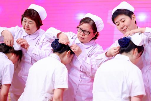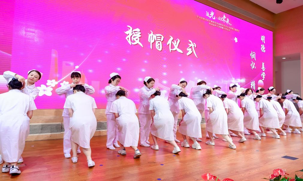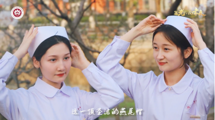 来自beat3659家附属医院的护理部主任及学院教师代表,为近200名学生逐一戴上神圣的燕尾帽。