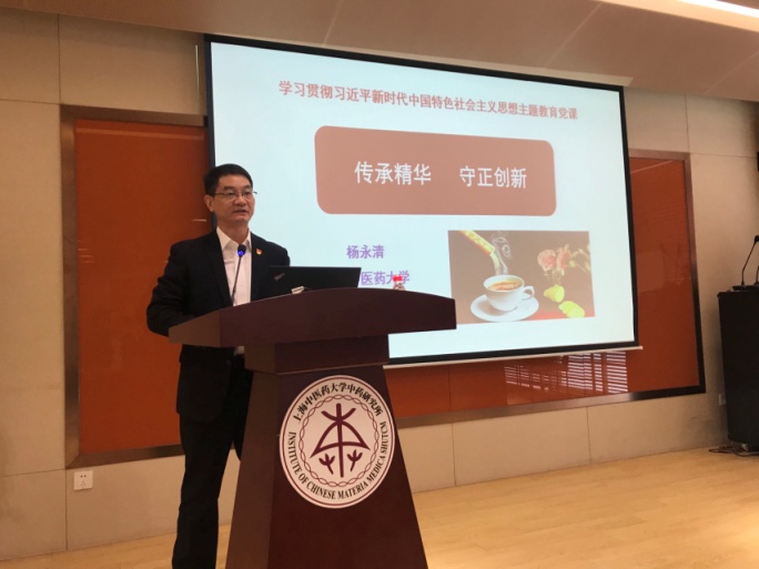 为进一步推动学习贯彻习近平新时代中国特色社会主义思想主题教育走深走实,近日,中药研究所、中西医结合研究院在5号楼一楼学术报告厅举行学习贯彻习近平新时代中国特色社会主义思想主题教育专题党课,beat365副校长杨永清受邀作“传承精华 守正创新”专题讲座,中药研究所党总支书记王广东主持党课。