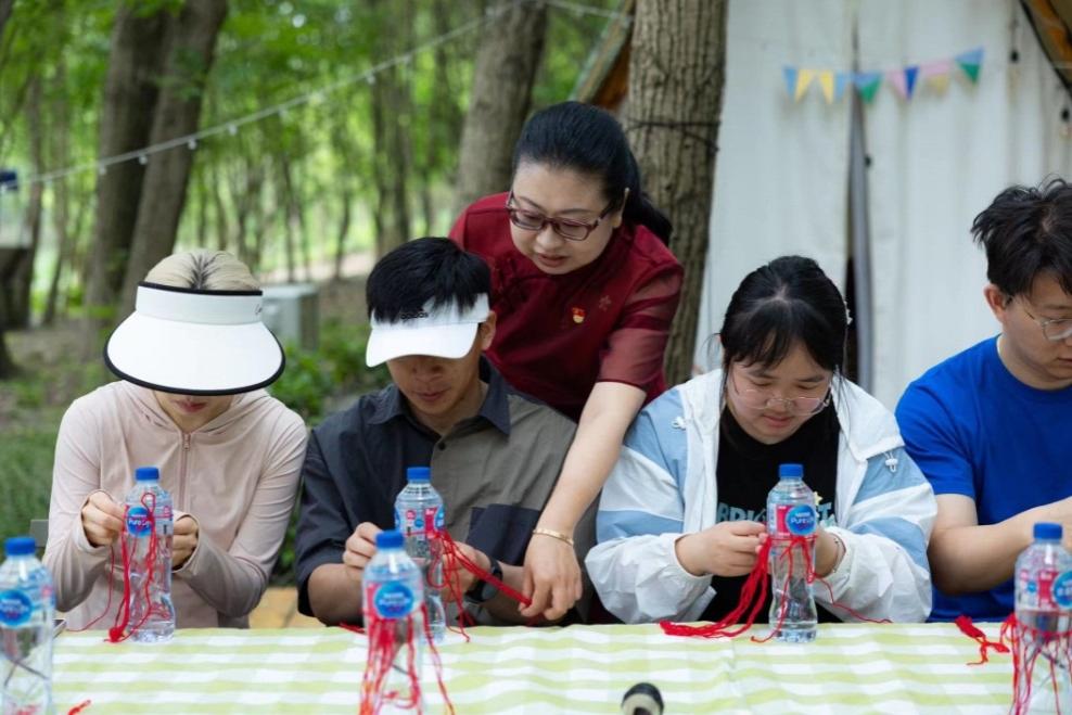 科技人文研究院第二党支部书记任宏丽结合非遗传统项目“挂蛋”,向大家重点介绍了二十四节气中立夏和小满的节气特点、民俗文化、传统医学保健知识等,并指导大家一起体验如何制作“挂蛋”。青年教师班主任秦海龙带领结对共建党员、白领人才公寓的青年白领,一起练习八段锦,从“双手托天理三焦”到“背后七颠百病消”,一招一式下来,大家既体悟到中医药文化的魅力,又掌握了如何有效预防颈椎病、肩周炎等“白领综合征”,达到中医药“治未病”的目的。校武术队队员表演了长拳、太极拳、刀术等精彩节目。