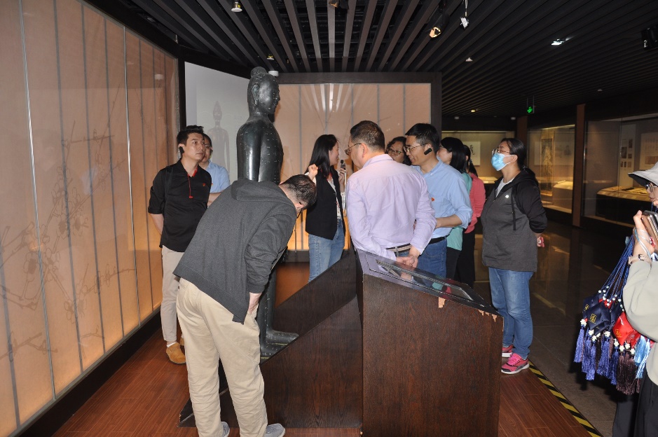 在上海中医药博物馆,一行人参观学习中医学在各个历史时期取得的主要成就。从中国最早的医学典籍《黄帝内经》,到被西方国家称为“东方医学巨典”的《本草纲目》;从传承两千多年博大精深的经络学说,到源远流长的阴阳五行原理;浮雕中“精气神”三个字便是中医之本,反映着一个人的健康状况,也体现了中国哲学的宇宙观和生命观。博物馆的镇馆之宝清乾隆御制针灸铜人更是引起很多教师党员的兴趣,纷纷表示当前正是中医药发展的好时机,并探讨如何将针灸应用到现代科学研究工作中去,实现传承中的不断创新。