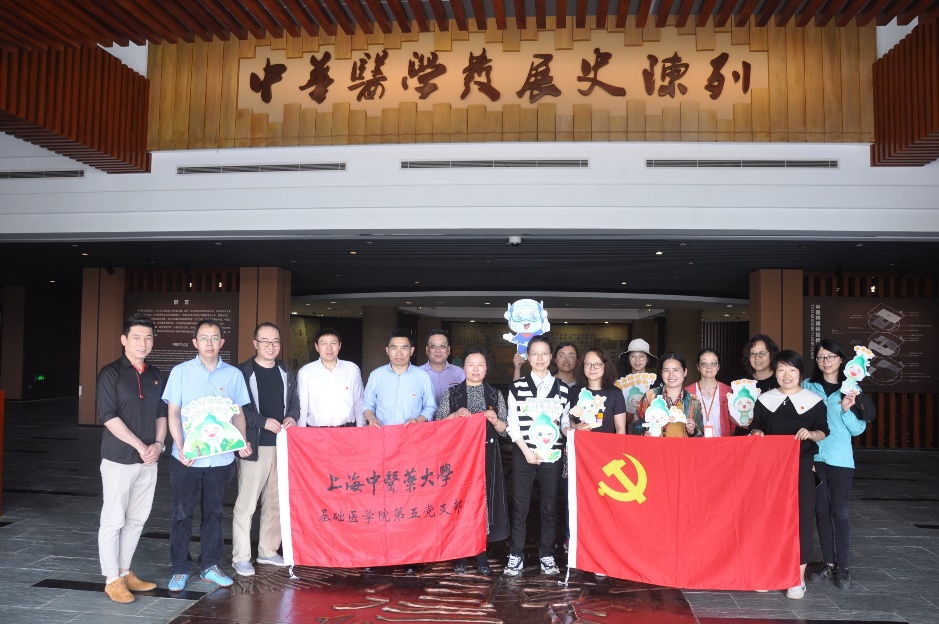 5月26日,beat365官方网站基础医学院第五党支部与上海交通大学医学院解剖学与生理学系党支部举办“党建引领课程思政建设”共建交流活动。此次活动以探寻中医药文化为起点,在第五党支部书记邵水金的带领下,两支部党员一同参观了beat365中医药文化园的“园中园”——百草园和上海中医药博物馆。在面向公众开放的百草园中,大家一起辨认常用药用植物,直观感受beat365“开门办思政”的具体举措。