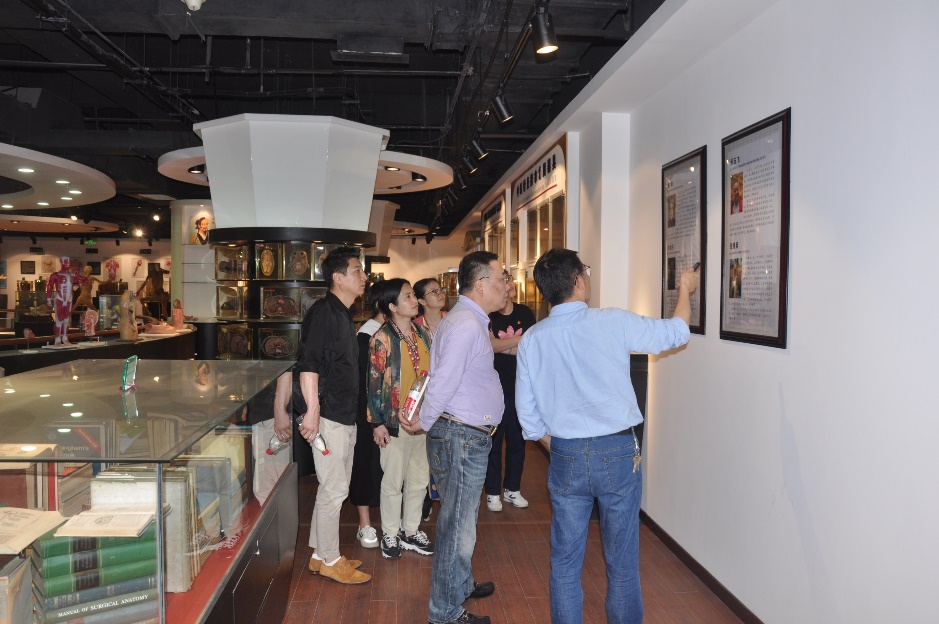 会后,一行人参观beat365人体与经穴解剖学陈列馆、遗体捐献文化走廊和人体解剖学实验室等。邵水金介绍镇馆之宝“镜面人”及其捐献者事迹,讲述中医腧穴解剖学发展历程,着重介绍全身腧穴塑化标本这一具有中医特色的珍贵展品。