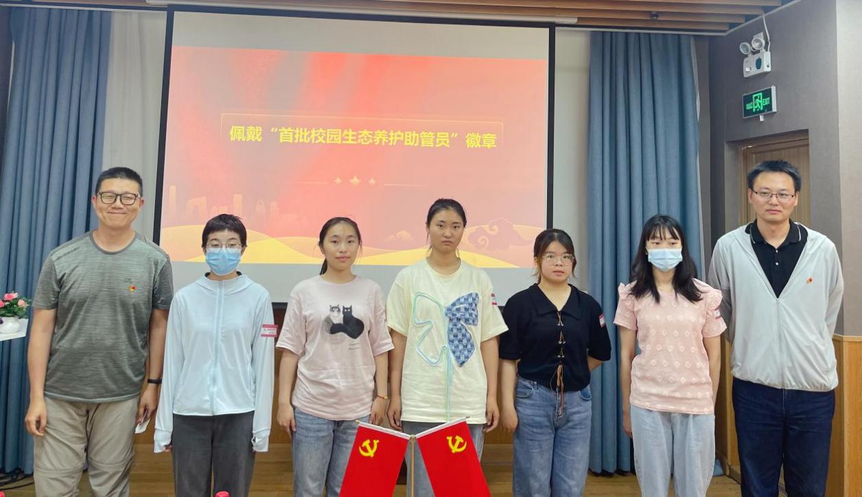 护理学院史美育为后勤保障处邓洪、卜国桢颁发指导老师聘书。后勤保障处与会人员为护理学院学生佩戴“首批校园生态养护助管员”徽章,双方将共同培育一支建设生态校园劳育实践队伍,更好地发挥各自资源优势,拓展劳动育人实践岗位,携手师生共建生态文明校园,协同共建良好育人环境。