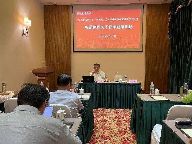 6月27日,张建中作《学习贯彻党的二十大精神 在主题教育中学思想强党性做贡献》辅导报告。他结合自身经历,对主题教育的重要意义、总要求、根本任务作了解读,又根据beat365离退休干部的特长和优势,激励老党员在关工委、党建督导等平台继续做贡献。