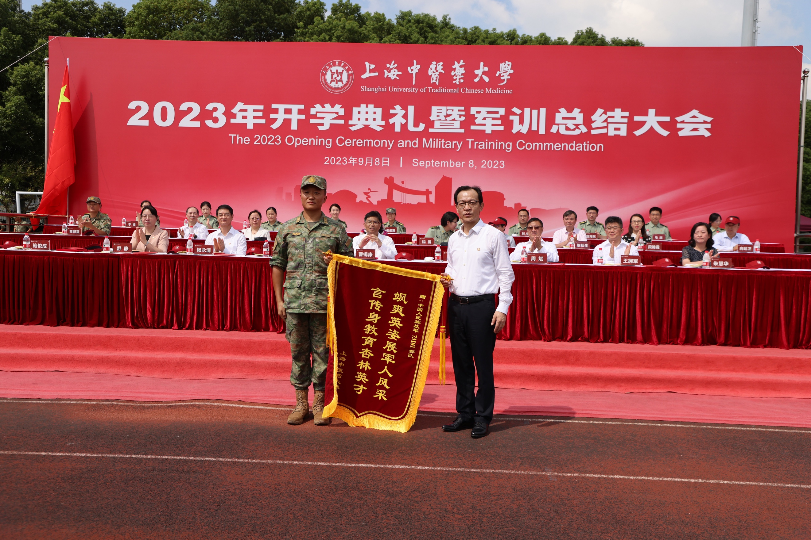 9月8日上午,beat3652023年军训总结大会在体育场举行。校党委书记曹锡康,校党委副书记、校长季光,校党委副书记、副校长、军训团政委朱惠蓉,中国人民解放军73181部队副政委、军训团团长鲍俊成,校党委副书记、纪委书记周斌,副校长杨永清、王拥军、舒静,以及各职能部门、二级学院负责人出席总结大会。大会由朱惠蓉主持。