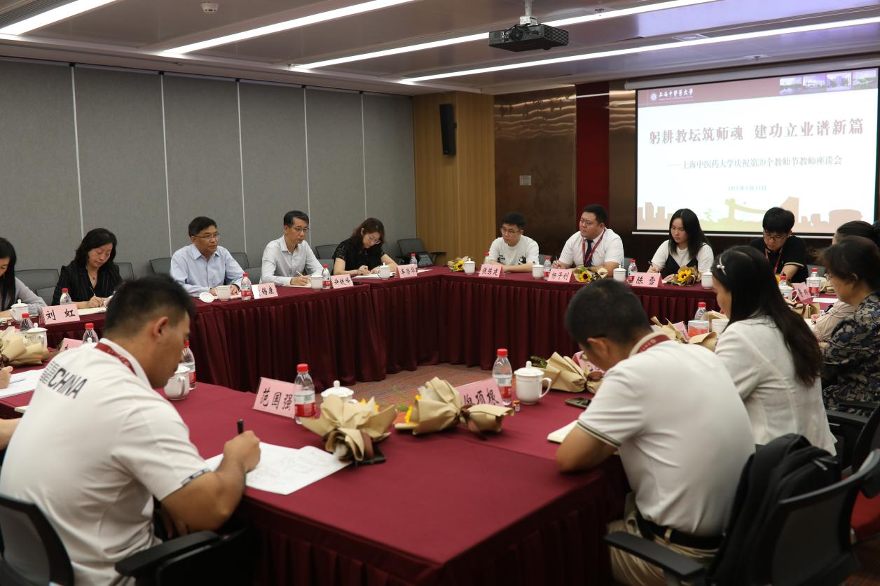 为学习宣传贯彻《关于教育系统学习贯彻习近平总书记教师节重要指示精神的通知》精神,9月13日,学校以“躬耕教坛铸师魂,建功立业谱新篇”为主题,在中医药国际标准化研究中心辅楼206会议室召开庆祝第39个教师节教师座谈会。校党委书记曹锡康、党委副书记许铁峰及相关职能部门负责人,“上海工匠”、全国高校教师教学创新大赛获奖者代表、2023年上海市哲学社会科学教学科研骨干研修班学员、教师党支部书记、青年教师班主任、新进教师代表等20余人参加座谈。会议由许铁峰主持。