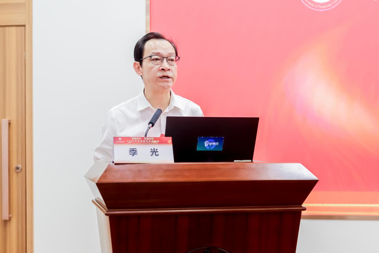 葛广波教授作总结发言,他感谢参会的各位学者和师生,表示通过这场不一样的学术盛宴,看到了来自各学科专业领域学者拥抱中医药这一领域。他希望中医药这文化瑰宝的魅力能让更多人看到,运用科学严谨的方法深入挖掘,也希望现在正在求学路上的青年学子们坚定理想信念,脚踏实地做人,勤于思考做事。