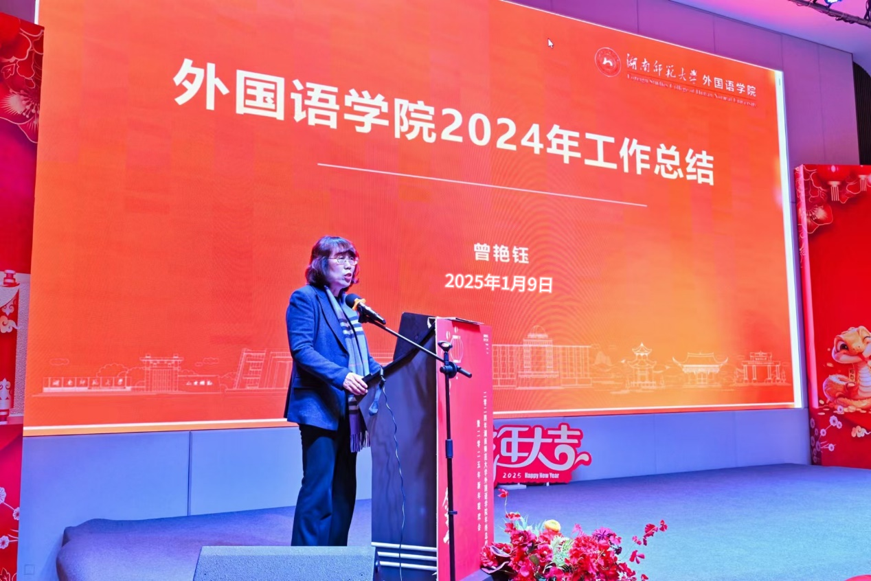 院长曾艳钰教授代表学院做2024年工作总结报告,她从党建工作、人才培养、师资队伍建设、社会服务与国际交流以及如何应对当前面临的挑战等6个方面回顾总结了2024年学院事业发展的整体情况,对2025年学院未来工作进行了展望。曾院长既肯定了学院在各方面取得的突出成绩,也提出了学院发展面临的各项挑战。她提出,要积极应对挑战,谋求学科发展的新路径,尤其要重视建立“外语+”复合型人才培养模式,努力实现人工智能与国际传播、智慧教育等跨学科交叉融合,力求做到人才培养、学科建设与国家战略及地方社会发展紧密对接,提升区域国别研究的国际影响力,共同为太阳成集团tyc9728的辉煌未来贡献力量。