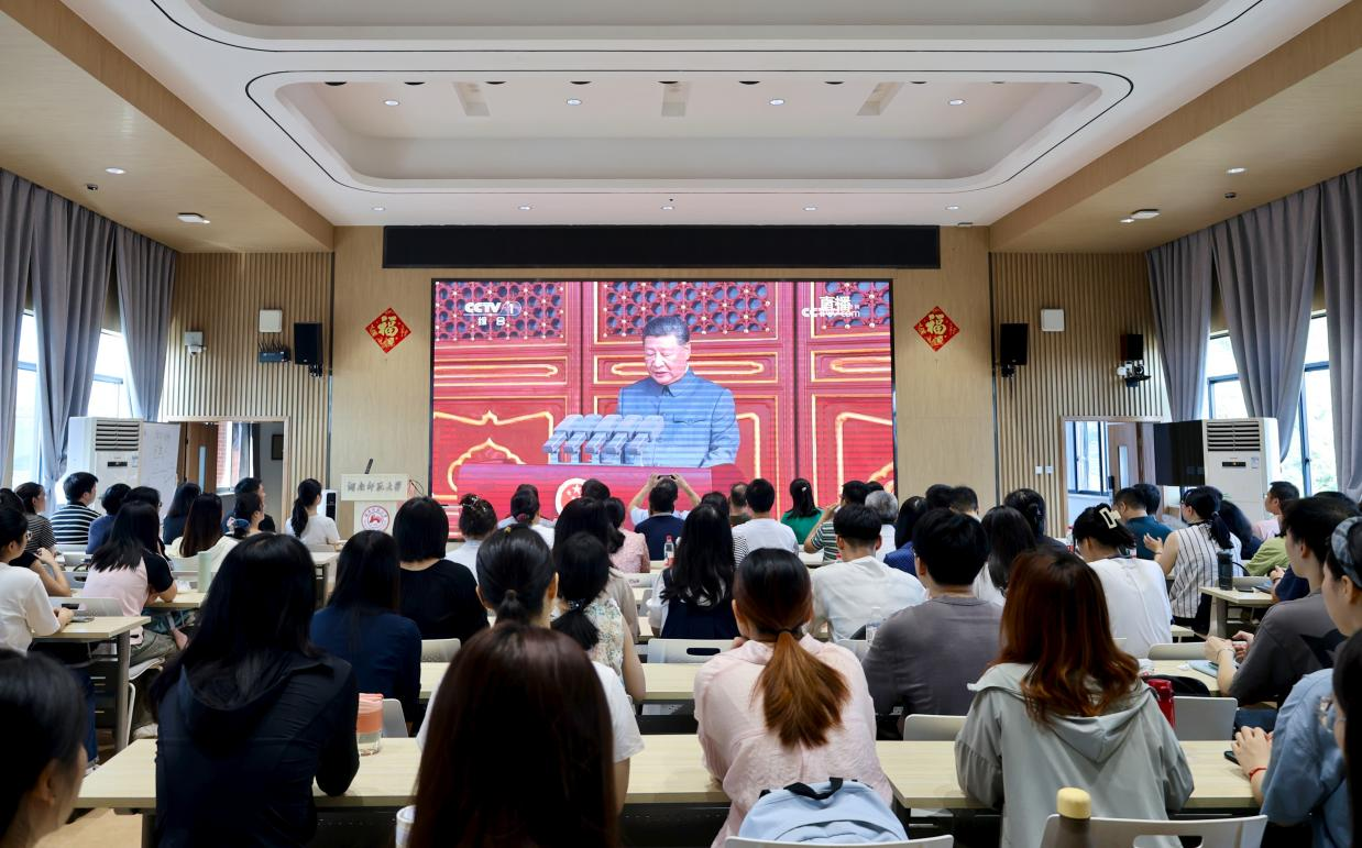 全体师生党员认真聆听了中共中央总书记、国家主席、中央军委主席习近平在纪念大会上发表的重要讲话,并观看了阅兵仪式。此次阅兵仪式充分展现了新时代国防和军队建设的辉煌成就,彰显出大国风采与强军力量。观看现场气氛热烈,师生们神情专注。