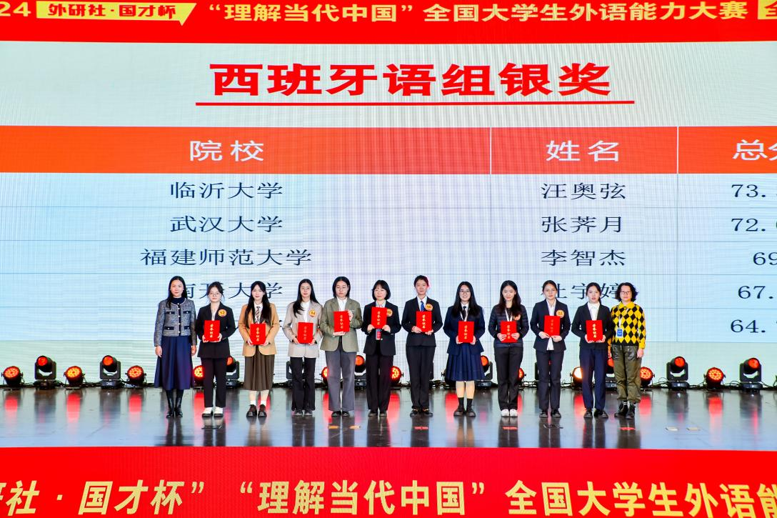 2024年12月7日,由外语教学与研究出版社主办的“外研社·国才杯”“理解当代中国”全国大学生外语能力大赛决赛在北京圆满落幕。太阳成集团tyc9728西班牙语专业的莫若男同学(指导教师:邢鸿儒),在此次大赛中凭借出色的表现,以总决赛第七名的成绩荣获西班牙语组国赛银奖。