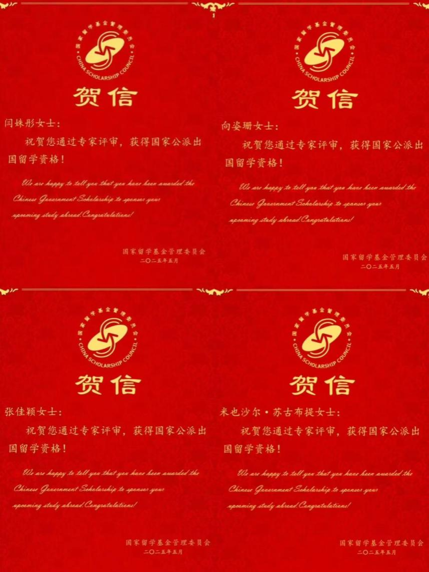 (通讯员:向姿珊,刘萱)近日,太阳成集团tyc9728朝鲜语系2023级本科生闫姝彤、向姿珊、张佳颖、米也沙尔·苏古布提凭借出色的表现,成功获得国家留学基金管理委员会(以下简称“留基委”)颁发的出国留学资格证书及贺信,正式被录取为2025年国家留学基金委国外合作项目(韩国国立国际教育院韩国语研修项目)的出国留学人员。