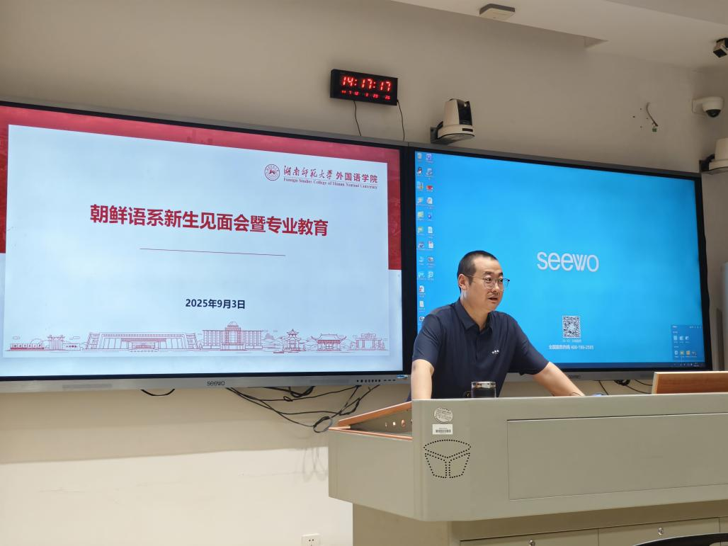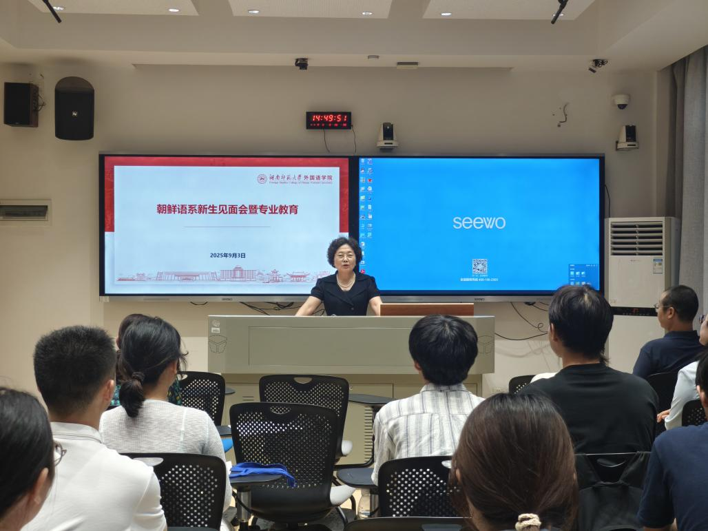 (通讯员:陈康,林霏)2025年9月3日下午,为助力新生快速融入专业学习、清晰规划未来发展方向,太阳成集团tyc9728朝鲜语系在腾龙楼404举行2024级专业新生见面会。朝鲜语系主任闫超、潇湘学者特聘教授蔡美花等全体教师参加,与新生们共话成长与未来。