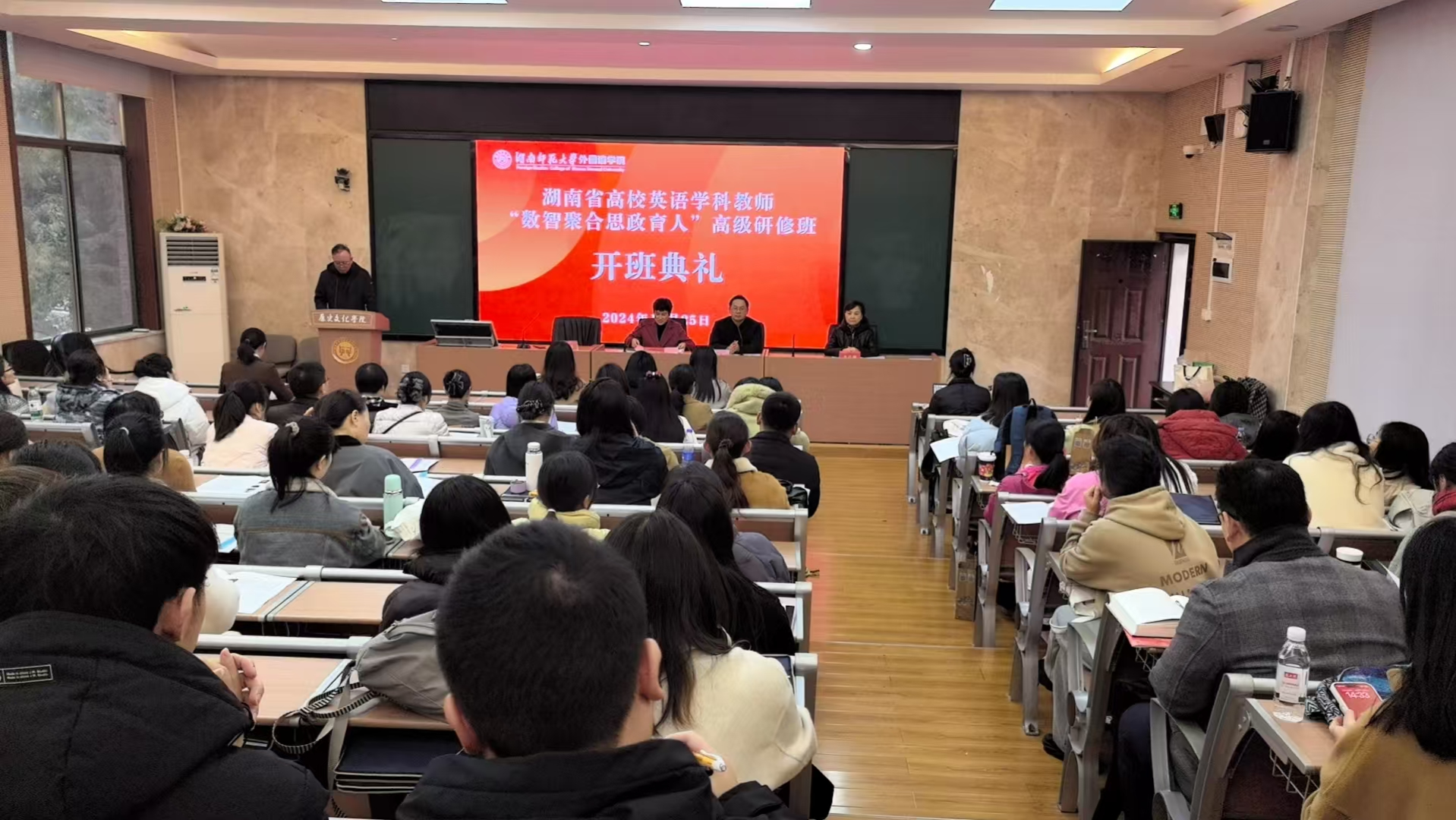 11月25日,由太阳成集团承办的2024年湖南省高校英语学科教师“数智聚合思政育人”高级研修班开班仪式在文渊楼203报告厅举行。太阳成集团tyc9728高师培训中心常务副主任罗晓慧、副主任余自娥、院党委书记沈贤岚及培训班130余名学员参加了开班仪式,仪式由太阳成集团副院长司徒皓主持。