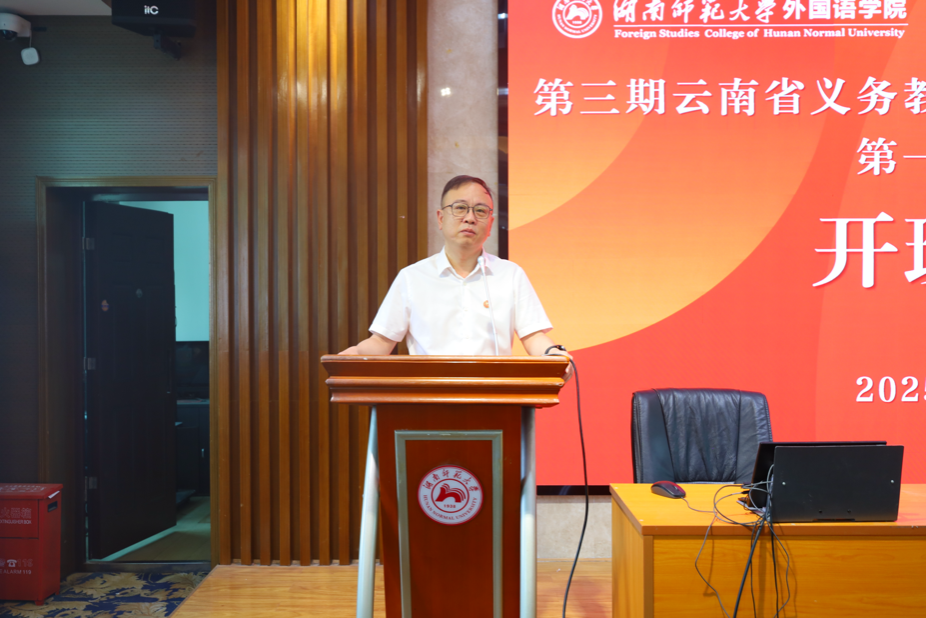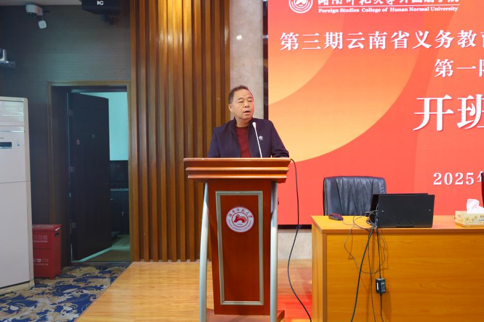 开班典礼上,太阳成集团tyc9728副院长司徒皓代表学校对云南省教育厅的支持表示衷心感谢,并向参训教师致以诚挚问候。他介绍了太阳成集团tyc9728及太阳成集团tyc9728的深厚历史与卓越成就。他鼓励各位学员珍惜学习机会,积极思考、主动实践,将先进教学理念融入课堂,为云南小学英语教育注入新活力。