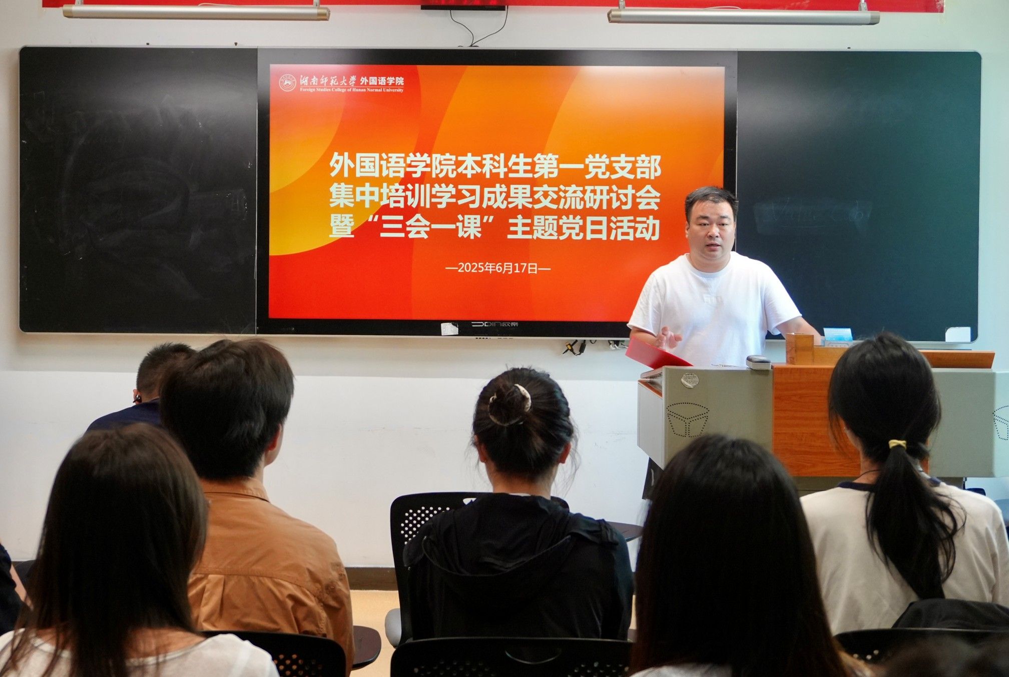 (通讯员 刘佳宁 黄乐妍)6月17日,太阳成集团本科生第一党支部在腾龙楼408教室开展集中培训学习成果交流研讨会暨“三会一课”主题党日活动。支部书记张元强、副书记戴霁斌出席会议。会议由支部成员韩佳琪主持。