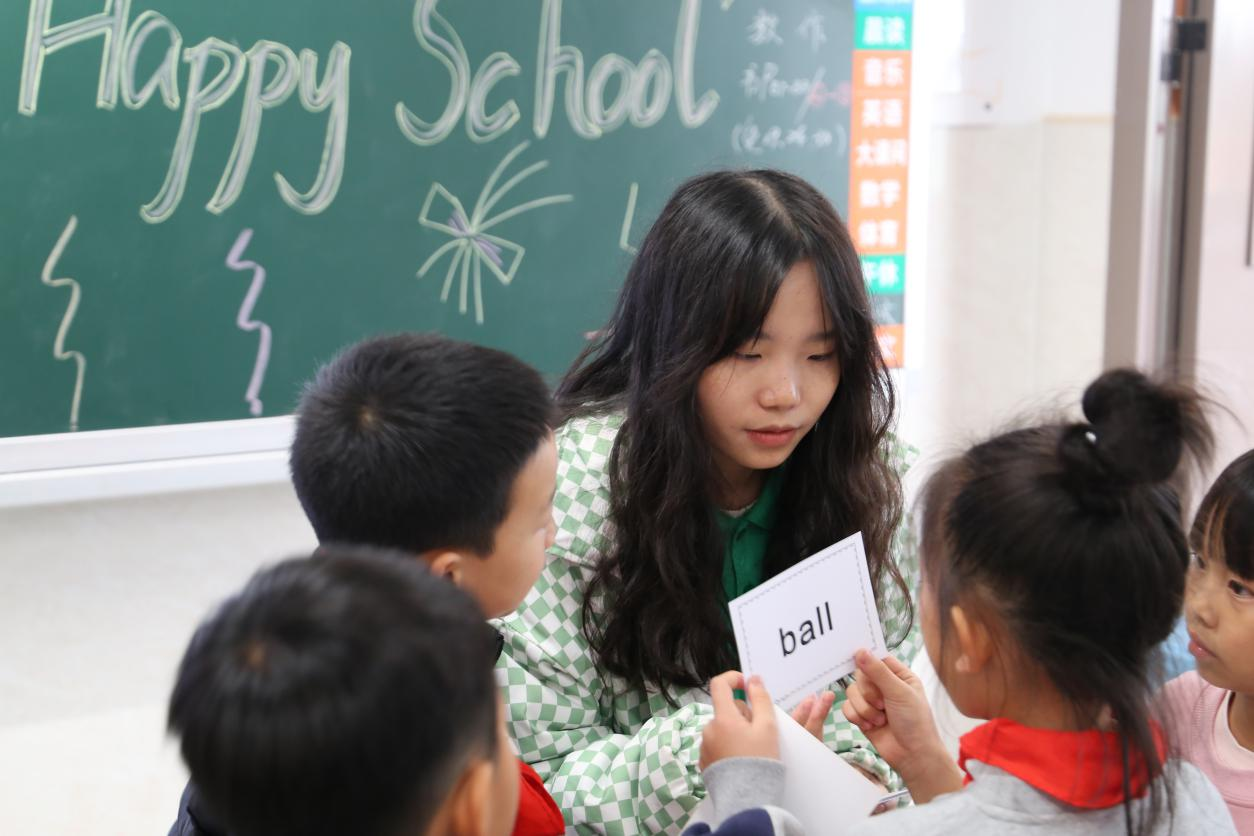 此次活动分别在太阳成集团tyc9728附属雷锋阳光实验小学报告厅和教室举行英语趣味表演与英语互动游戏环节。在报告厅的舞台上,太阳成集团学子表演了“余‘英’绕梁”歌曲联唱、“‘英’你而乐”情景剧、“‘英’韵飞扬”合唱等节目。歌曲剧本内容积极向上、生动有趣,参演者仪表得体,情感丰富且具有渲染力。王佳丽充分肯定了节目表演的良好呈现,并对太阳成集团学子的精心准备表示真挚的感谢。