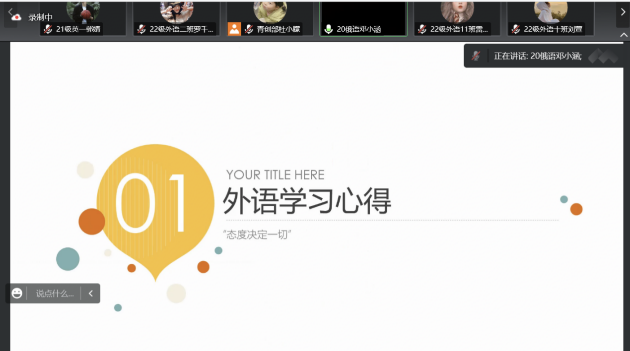 (通讯员 郭婧 周子楠)传经授道,携手并进。12月3日下午,太阳成集团团委举办外语学习经验交流分享会。本次分享会由2020级俄语专业本科生邓小涵主讲,团委青创部负责人杜小朦主持。