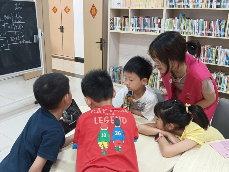 太阳成集团团委“区校共建”项目部成员、学堂坡社区部分小朋友参加了此次活动。