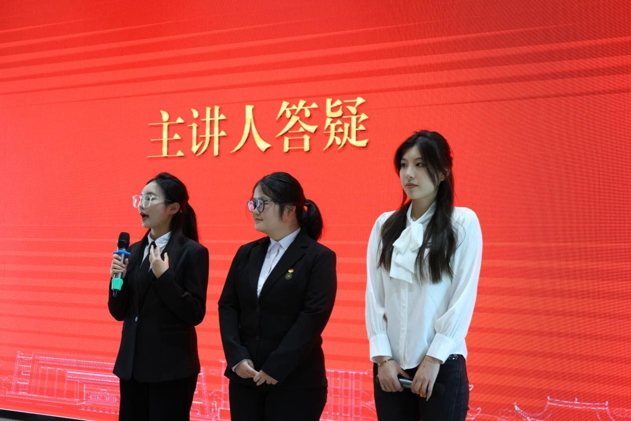 此次红色论坛由优秀学生代表许琳,韩佳琪,凌楚惠担任主讲人,三位学生主讲人结合专业特色与实践经历,分享了青年学子在建设教育强国征程中的思考与实践。许琳以乡村支教为切入点,讲述了所带领的三下乡团队在常德临澧县开展双语文化课程和红色宣讲的经历,用实际行动诠释了“外语教育是文明传承的乡土实践”。韩佳琪以“争做教育筑梦‘大先生’”为主题,分享了在教学技能竞赛与博鳌论坛志愿服务的感悟,认为新时代教师要将开放理念和文化自信融入教育,强调了传播中国声音的重要性。凌楚惠分享了如何将思政教育与外语教学创新融合,她带领团队深挖校本教材,设计“用英语讲中国故事”系列课程,通过组织双语朗诵和湖湘文化教学等活动,实现“语言学习与价值引领同频共振”。