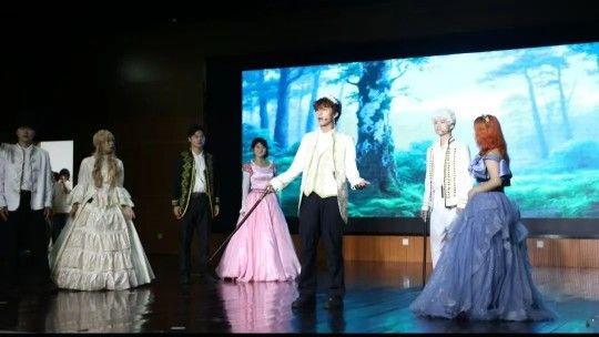 锺书班将舞台设计为充满诗意与欢笑的森林。剧中被放逐的公爵、化身少年的罗瑟琳等角色,在改编过程中既保留了莎士比亚的奇思,又融入了团队的独特巧思。整场演出呈现了一曲对人性宽容的赞歌,在舞台上绽放出温暖的光芒,让观众在欢笑中感受爱与宽恕的力量。