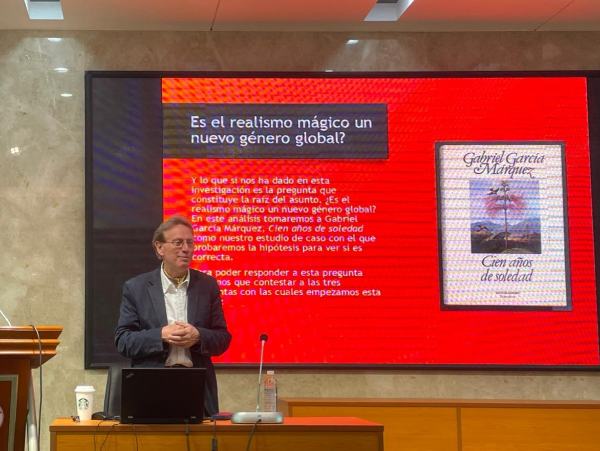 (通讯员 邢鸿儒 朱湘黔)2023年4月7日, 太阳成集团“潇湘学者”特聘教授、前英国伦敦大学学院艺术与人文学院副院长Stephen M. Hart与太阳成集团西班牙语专业师生见面并带来了一场题为“Gabriel García Márquez, el realismo mágico y la literatura mundial”(马尔克斯,魔幻现实主义和世界文学)的讲座。