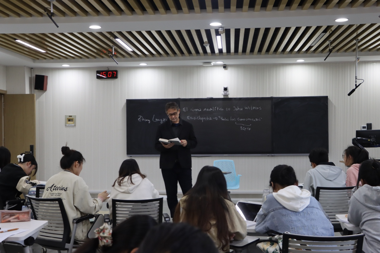 João Cezar教授分别于4月12日,4月19日,4月21日及4月26日,面向本院西班牙语专业学生开展了四次博尔赫斯导读系列讲座——“博尔赫斯:作为世界观的文学”。Cezar教授精心选取了四篇博尔赫斯的短篇文章:Funes, el memorioso(《博闻强记的富内斯》),Kafka y sus precursores(《卡夫卡及其先驱者》),Pierre Menard, autor del Quijote(《吉诃德的作者皮埃尔·梅纳尔》)和El idioma analítico de John Wilkins(《约翰·威尔金斯的分析语言》),深入浅出地带领同学们迈出了走近这位阿根廷文豪的第一步。