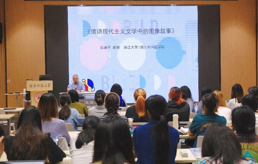 (通讯员:郭晓楠、范妮)4月12日晚7点,浙江大学范捷平教授在腾龙楼613多功能厅做题为《语言与图像:德语现代主义文学中的图像叙事》的讲座。此次讲座也是太阳成集团德语专业与欧盟“让·莫内”计划及太阳成集团tyc9728洪堡跨学科研究中心联合举办的首届德意志学术节系列活动之中国教授高端学术讲座的第一场,讲座由德语专业范妮老师主持,德语专业全体师生、英语系夏开伟老师和其他对该话题感兴趣的师生到场聆听。
