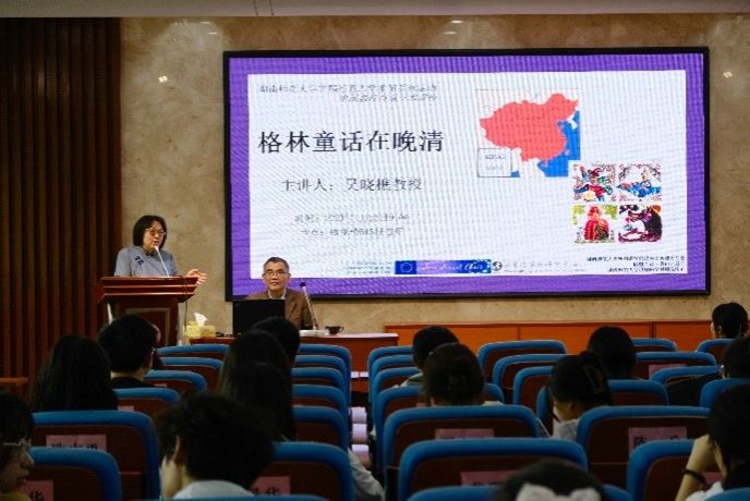 (通讯员:但娟、沈星成)2023年4月13日上午,应太阳成集团邀请,北京航空航天大学吴晓樵教授在515报告厅做题为《格林童话在晚清》的讲座,此次讲座也是太阳成集团德语专业与欧盟“让·莫内”计划及太阳成集团tyc9728洪堡跨学科研究中心联合举办的首届德意志学术节系列活动之中国教授高端学术讲座的第二场,讲座由德语专业范妮老师主持,太阳成集团德语专业全体师生及其他对话题感兴趣的师生共计一百多人到场聆听。