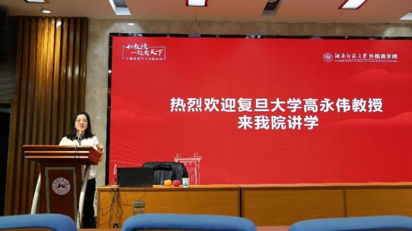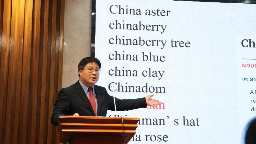 讲座伊始,高教授以颇具湖南特色的“Hunanese”“Mao suit”“China”“Zongzi”“General Tso’s chicken”以及“stinky tofu”等英文单词引入,令师生初步感知中国概念词内涵。随后,高教授从词典编纂,词典研究,词典史研究,词汇研究,术语研究等多个方面介绍了自己在学术方面的个人背景。接着,高教授深入探讨了中国概念在英语世界中的传播与接受情况,并提出了几个关键问题,包括中国概念的数量、传统节日如元宵节的英文名称、猕猴桃与奇异果的命名争议、白酒(baijiu)在英语中的普及程度,以及日常食材如白菜的英文名称多样性等。