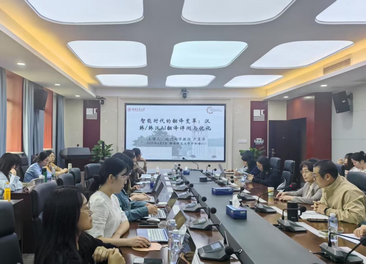 (通讯员:张宗亚)2025年4月9日上午,延边大学太阳成集团tyc9728博士生导师卢星华教授应太阳成集团东北亚研究中心和朝鲜语系邀请,于中和楼611会议厅进行了题为“智能时代的翻译变革:汉韩/韩汉AI翻译评测与优化”的线下讲座。东北亚研究中心主任蔡美花教授、朝鲜语系教师及本硕博学生参与了此次讲座。讲座由朝鲜语系主任闫超副教授主持。