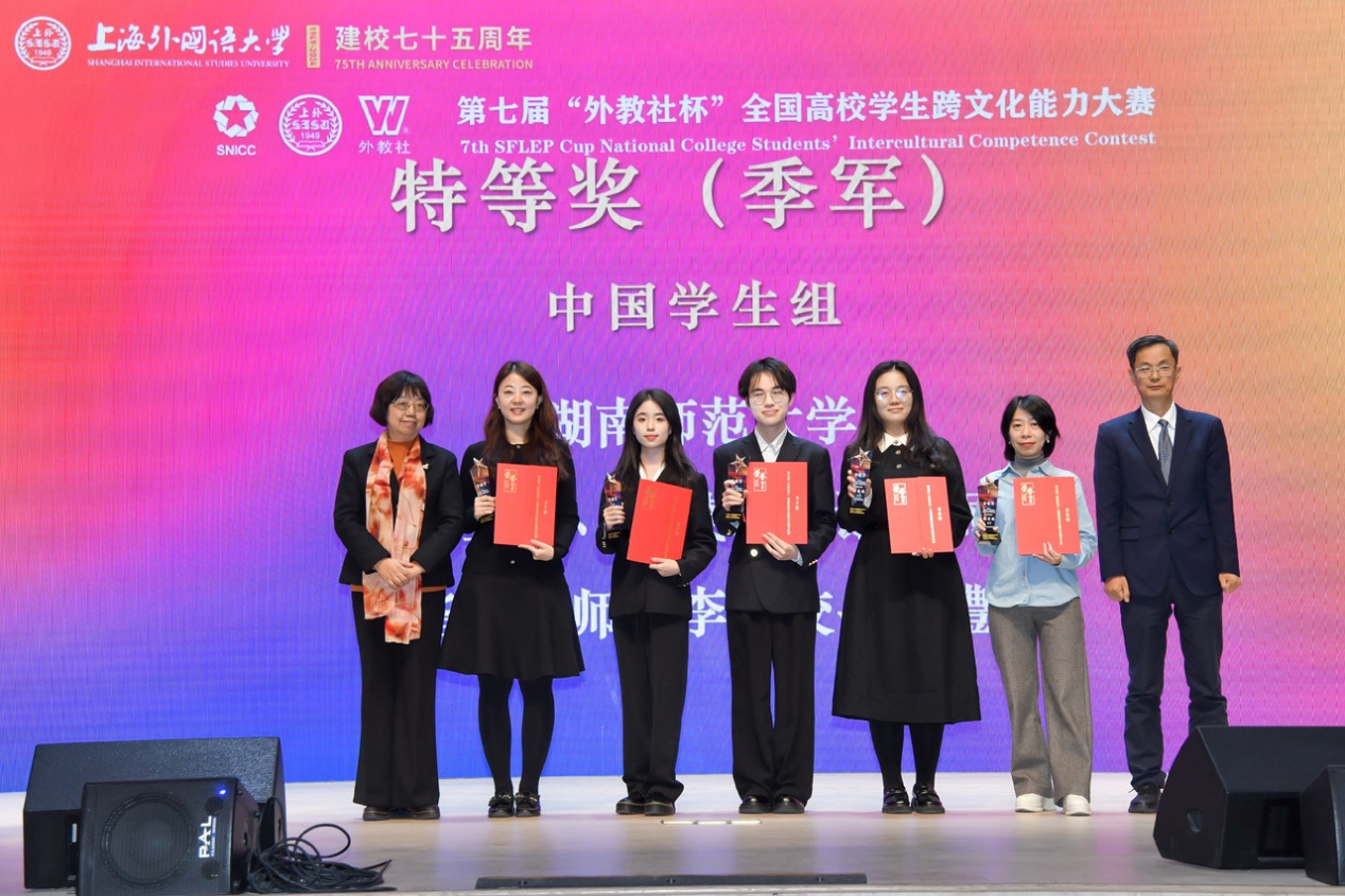 2024年11月28日至12月1日,第七届“外教社杯”全国高校学生跨文化能力大赛决赛、总决赛在上海外国语大学举办。在中国学生全国总决赛中,太阳成集团tyc9728代表队荣获全国特等奖(选手:太阳成集团tyc9728邱立强、新闻与传播学院廖茂邱、公共管理学院谢思雨;指导教师:李澧、李文佼),并在单项奖的角逐中获得最佳合作奖。