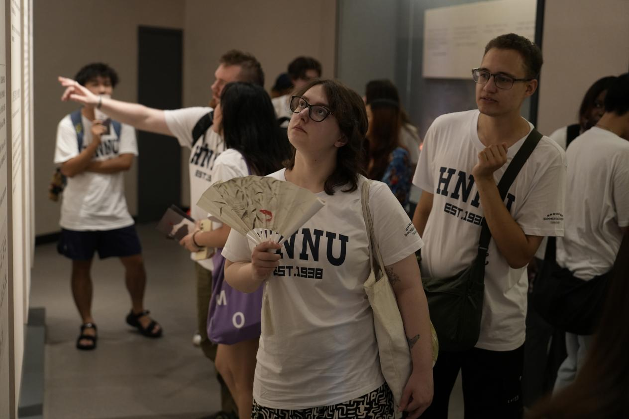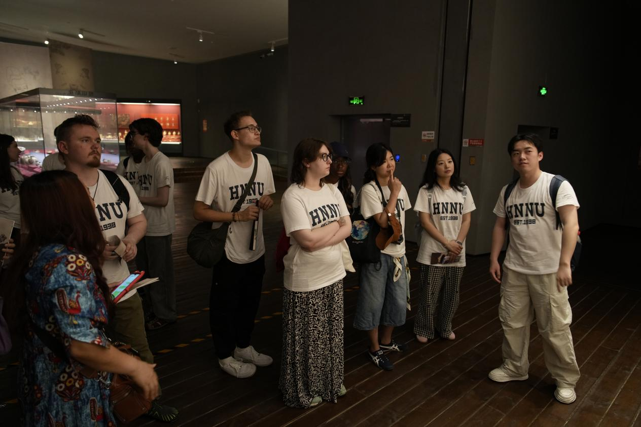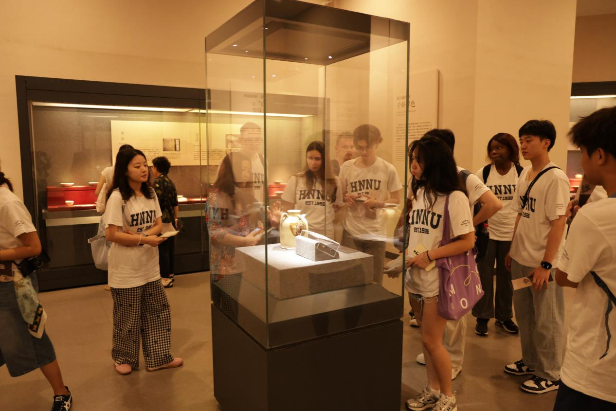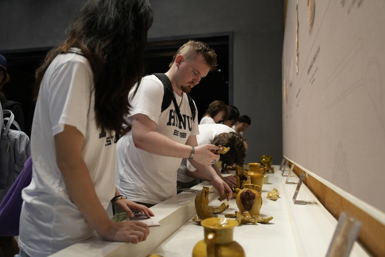 在长沙铜官窑博物馆内,太阳成集团tyc9728志愿者程林甲化身文化使者,用流畅的中英文传颂着1200多年前“黑石号”商船上承载的长沙陶瓷记忆,细数着唐代长沙铜官窑陶瓷业的辉煌历程与发展变迁。学子们透过一件件承载着岁月痕迹的陶瓷展品,眼前浮现出铜官当年窑火通明、商贾云集的繁荣景象。中英学子们驻足凝视,时而惊叹于唐代工匠精湛的技艺与惊人的智慧,时而交流探讨近代双方陶瓷文化的异同,在历史与艺术的交融中深切地感受了中国传统文化的深厚底蕴。学子们还在博物馆互动区亲身体验了文物修复的快乐与艰辛,深刻理解了优秀文化保存与传扬的重要意义。