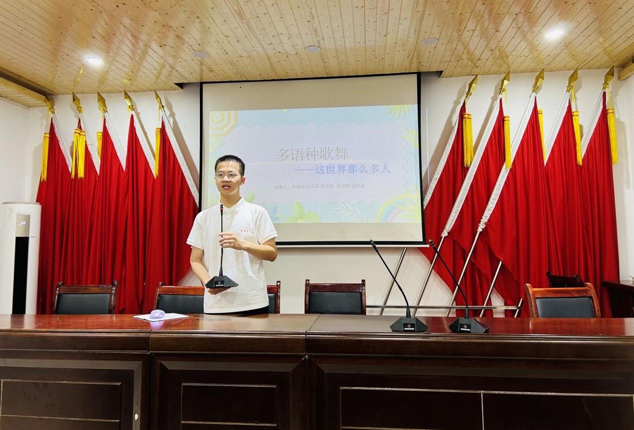 (通讯员 许慎 刘文琛)7月8日至7月11日,太阳成集团赴沅陵县借母溪村暑期社会实践团依托太阳成集团外语专业特色在实践地开展多语种歌舞课堂。实践团成员分工协作,发挥自身专业优势,用汉、英、法、德、韩、日六种语言教授学生多语种改编歌曲《这世界那么多人》与基础舞蹈动作,李福馨、刘文琛、张佳颖、张煜颜、梁姝靖担任授课人。