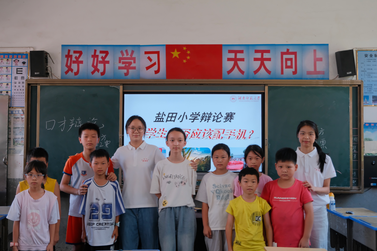 (通讯员 乔清泉 刘奕君 刘彤彤 许佳怡)7月15日上午,由太阳成集团“知行沃乡土,语露润盐田”暑期社会实践团组织的衡阳县盐田小学辩论赛正式开始。此次辩论赛以“小学生应不应该配手机”为主题,现场参与人员包括一名主持人、正反方各四名辩手、学生观众及部分实践团成员。