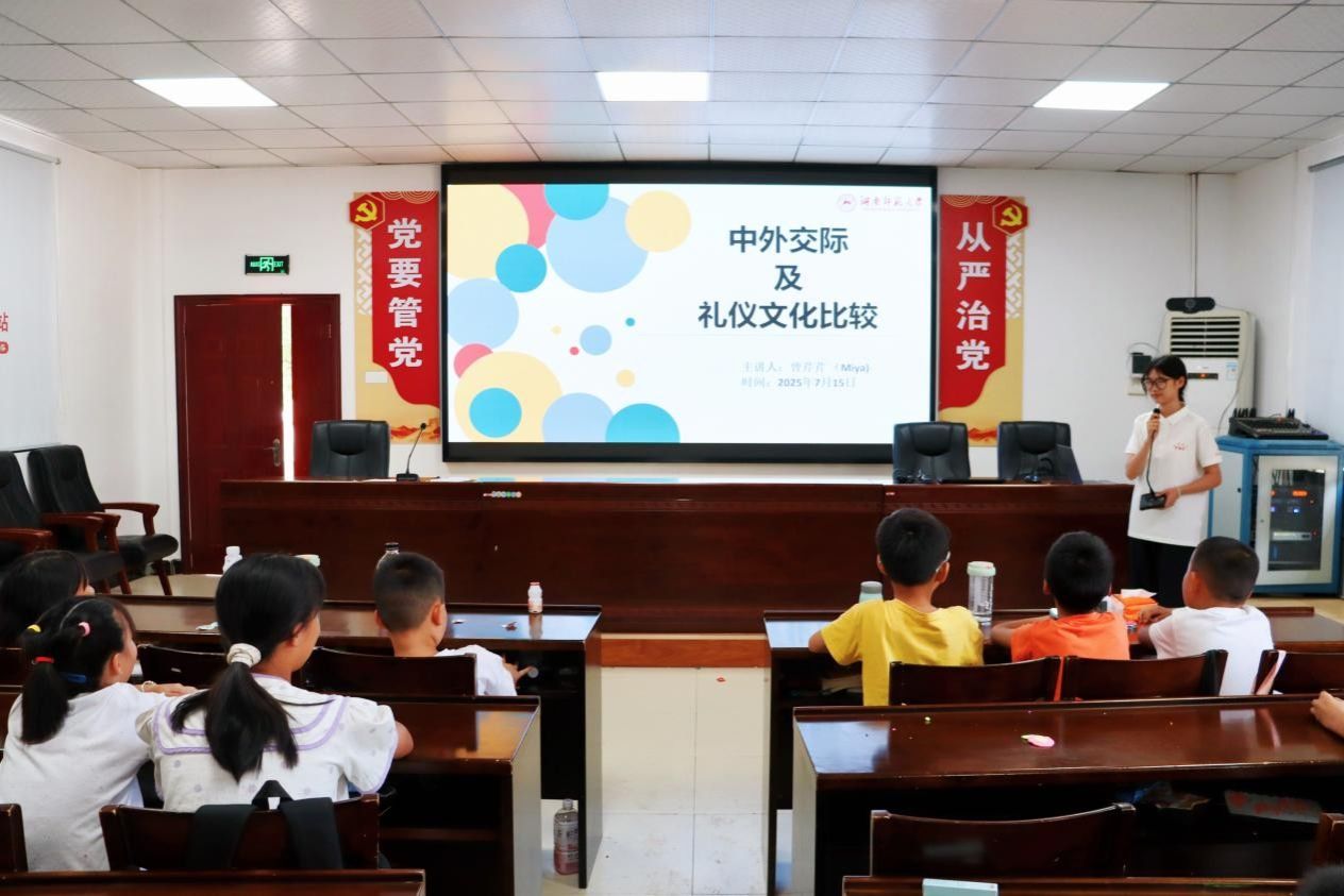 (通讯员 马纳克 杨爽)7月15日上午,太阳成集团“‘凤’起苗乡‘语’见四方”暑期社会实践团在张家界市慈利县乡阳凤坪村村委服务中心开展国外交际文化及礼仪分享会。此次活动旨在培养学生主动观察、尊重不同文化间差异的意识,引导学生形成“入乡随俗”的跨文化交际观念。