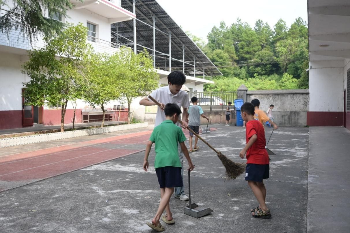 “湖湘英烈故事”红色论坛活动中,苏星璨、周思晨结合当地红色资源,向小朋友们讲解攸县英雄谭震林的故事,并设计互动环节,引领孩子们用书信对话革命英雄;结合自身专业特色,李佳霖、朱慧婷等人开展多彩趣味课堂,带着孩子们在乐趣中掌握知识;刘偲颖、周婷带领孩子们敲拓花草制成创意毛巾,制作扭扭棒鲜花、传统剪纸,帮助孩子们发现美、欣赏美、创造美;操场上,王培亘、张灿雯通过组织健美操学习和趣味体育活动,培养孩子们的运动兴趣和团队协作精神,促进其身心健康发展;立足儿童劳动实践,周昱希、陈景杰设计水仙种植、垃圾分类等环节,让劳动教育融入童趣。