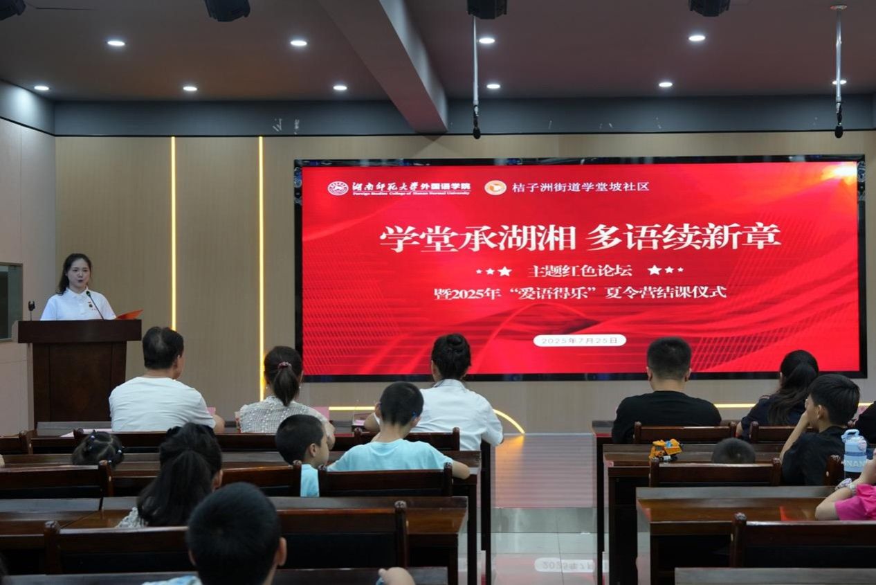 此次红色论坛充分运用区校共建平台,以情景剧为媒、以多语传播为桥,将“讲台”搬上“舞台”,通过跨时空对话与跨语言演绎,在社区青少年心中厚植爱国情怀与湖湘精神,为赓续红色血脉、讲好中国故事注入青春动能。