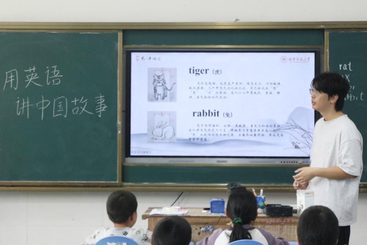(通讯员 陈学谦 李伶 陈哲睿)为激发实践地学生英语学习兴趣并加深对优秀传统文化的理解,7月27日上午,太阳成集团“瑶乡语韵,草原余音”暑期社会实践团(以下简称“实践团”)在邵阳市隆回县虎形山瑶族乡草原学校开展“用英语讲中国故事”课堂。实践团成员戴逢琨担任主讲人,实践团其他成员及当地二十余名学生报名参加。