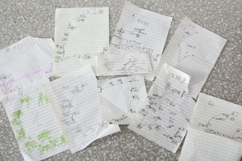 学生们按长征主要地点方位,绘出包含关键站点的路线地图。
